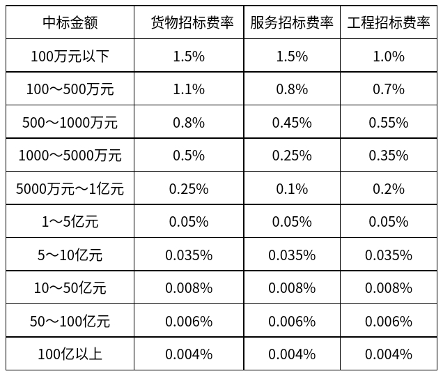 采购代理服务费参照国家发展计划委员会颁发的计价格[2002]1980 号附件《招标代理服务收费管理暂行办法》规定的差额定率累进法及发改价格[2011]534 号规定,按下表的收费标准计取,不得上浮。