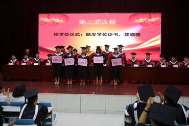 仪式在雄壮的国歌声中拉开了帷幕。河北医科大学临床实践教学部张振斌主任宣读了河北医科大学学位评定委员会关于授予学士学位的决议。主席台就坐的导师团为2017年本科毕业生进行拨穗礼,并对考研中涌现出的临床医学14-4班东六2单302-1宿舍的四名优秀学生颁发了考研团队奖,每人奖金1000元。