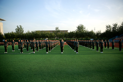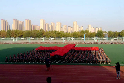 在全体师生的共同努力下,经过13天的艰苦训练,所有参训学员圆满完成了军训的各项任务。伴随着庄严的国歌声,结业典礼正式拉开帷幕。首先,校长乔跃兵在阅兵总指挥的陪同下检阅了全部43个学生军训方队,在乔校长亲切问候时,同学们报以整齐洪亮的回应,“为医专争光!”的声音响彻在运动场上空。随后,分列式表演正式开始。伴随着雄壮的分列式进行曲,各系代表方队沿着阅兵道依次正步经过观礼台,整齐肃穆的方阵、气势磅礴的口号、刚劲有力的摆臂、步调一致的踢腿,举手投足间,既透出军人坚毅果敢的气质,又彰显着医专学子昂扬向上的精神风貌,赢得了观礼台上各位领导和老师的阵阵掌声。随后,同学们表演了擒敌拳,表演方队首先变化组成红十字标志,与此同时,“厚德、笃学、博爱、精医”的校训响彻云霄;接着,方队组成了“2017”“十九”两个图案,寓意着2017级医专学子预祝党的十九大胜利召开和为国争光的信念;在方队组成倒计时数字后,精彩的擒敌拳表演正式开始,动作整齐划一,气势如贯长虹,展现了我医专学子的铿锵斗志。