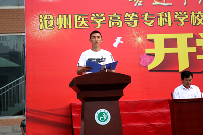 开学典礼在庄严的国歌声中拉开了帷幕。护理系护理17-2班耿琦璇同学作为新生代表,表示在今后的日子里一定遵守校规校纪,踏踏实实的做好每件事,用智慧和努力去创造美好的明天。医学技术系影像16-1班李博伦同学代表老生发言,他结合自身经历,向学弟学妹们介绍了自己的大学生活和学习经验,并希望新同学能够珍惜时光,做好规划,用积极乐观、勇往直前的生活和学习态度为自己的医专梦打一个满分。基础医学部病理教研室王汝峰老师代表全体教师发言,表示作为一名教师,愿意倾尽所学,全力以赴,为学生上好每一堂课,愿为学生实现自己的理想保驾护航。随后,全体新生在口腔系党总支书记樊喜悦的带领下高握右拳,齐诵《医学生誓言》,慷慨洪亮的声音宣告了他们争做一名优秀医学生的信心和决心。