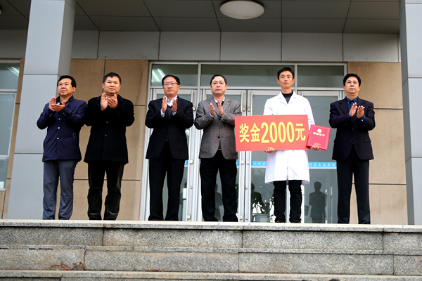 为表彰任常启同学的先进事迹,10月8日,我校召开专门会议,决定授予任常启同学“优秀大学生”荣誉称号,颁发奖金2000元。党委书记刘健、校长乔跃兵、党委副书记李炳仁及学工部、组宣部、校团委、医学系相关领导与任常启同学进行了座谈。在10月16日的升旗仪式上,我校隆重举行了表彰仪式。
