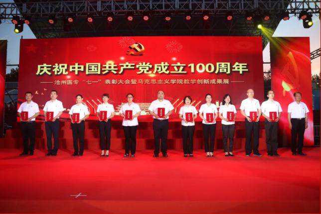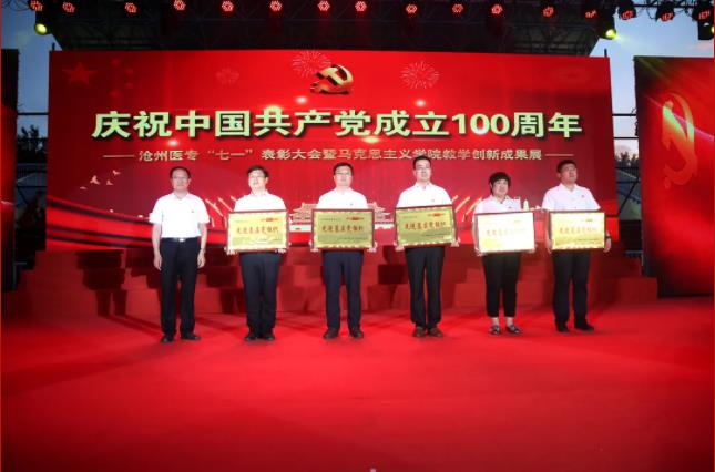 百年征程波澜壮阔,百年初心历久弥坚。6月20日晚,我校体育场灯火辉煌,灿若星辰。为庆祝中国共产党成立100周年,大力弘扬爱国爱党精神,同时展示马克思主义学院教学创新成果,我校隆重举行庆祝中国共产党成立100周年——沧州医专“七一”表彰大会暨马克思主义学院教学创新成果展。市委宣传部三级调研员李芬、市委教育工委副书记代砚广、市教育局工会主席葛亚楼受邀出席活动,与我校党政领导班子成员、全体教职工和全体在校生欢聚一堂,共庆党的百年华诞。