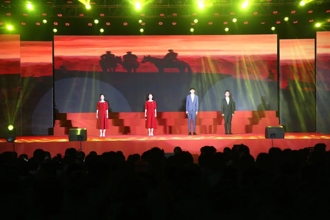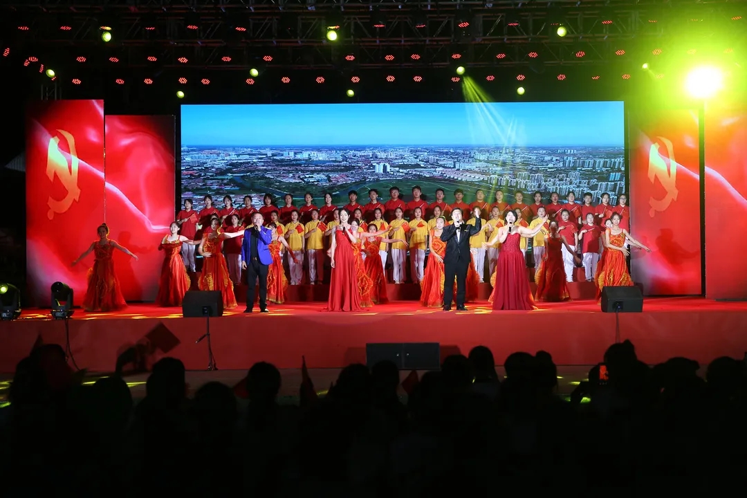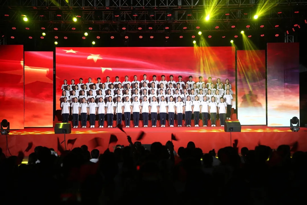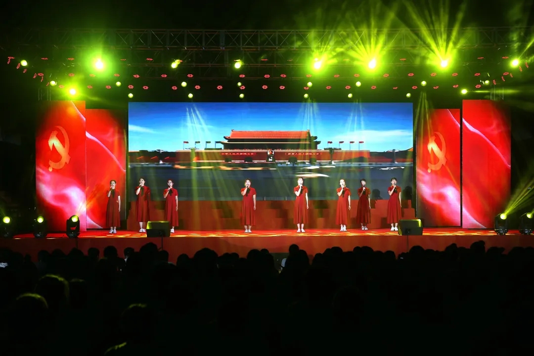 最后,现场人员全体起立,齐声合唱《没有共产党就没有新中国》。气势磅礴、振奋人心的歌声响彻夜空,震撼着每一个人的心灵。