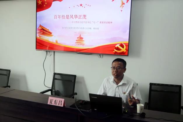 启动仪式后,沧州医专马克思主义学院夏东昌老师进行了习近平总书记在庆祝中国共产党成立100周年大会上的重要讲话精神专题宣讲。