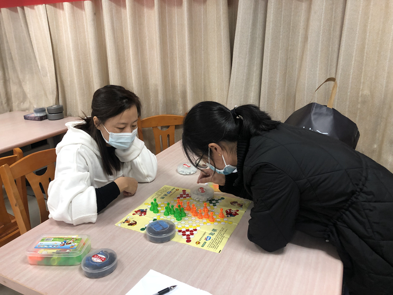 大家兴致勃勃地参与其中,出错一次牌、走误一步棋,虽有些懊悔,却报以爽快的笑声,胜者不骄不躁,败者不气不馁,尽情地享受棋牌活动带来的快乐,现场气氛紧张而祥和。