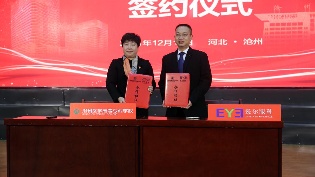 自2013年我校与爱尔眼科医院集团开展合作以来,校院双方建立了良好的合作关系。沧州医专与爱尔眼科医院集团签署战略合作协议,成立爱尔产业学院,沧州爱尔眼科医院成为学校附属眼科医院,标志着校院双方步入了紧密合作、共谋发展的新阶段。