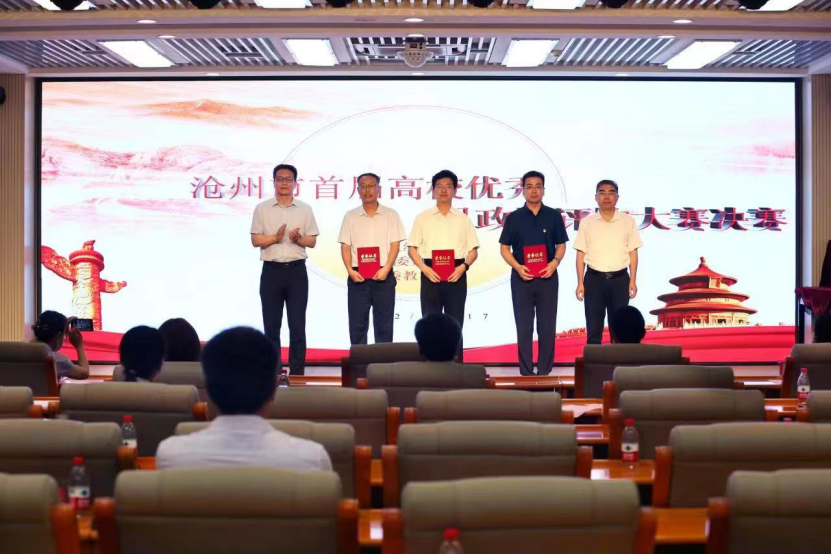 据悉,为深入贯彻落实习近平总书记在学校思想政治理论课教师座谈会上的重要讲话精神以及中央、省市委关于加强思政课建设的工作部署要求,不断提升思政课教师的理论素养、综合素质和专业化水平,沧州市委宣传部、市委教育工委决定举办沧州市首届高校优秀思想政治理论课评比大赛。自接到比赛通知后,我校高度重视,认真落实比赛要求,4月下旬,组织宣传部和马克思主义学院积极组织校内初赛,选拔优秀教师参加全市复赛。5月,经过全市复赛,我校夏东昌、刘翠、刘琪3名老师晋级全市决赛。