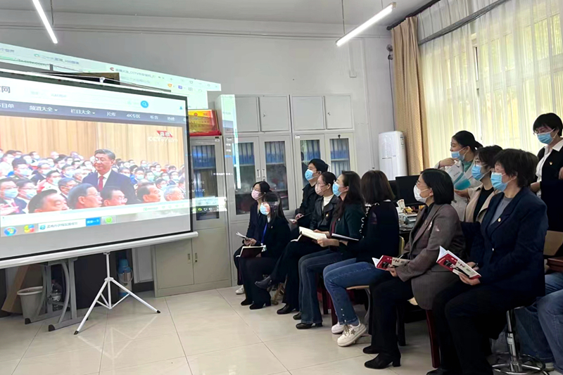 2022年10月16日,举国关注、举世瞩目的中国共产党第二十次全国代表大会在北京隆重开幕。为深入学习贯彻党的二十大精神,按照学校党委统一部署,上午十点,学校党委理论学习中心组、各党总支、党支部分别组织师生收听收看大会开幕式盛况,聆听习近平总书记代表中国共产党十九届中央委员会向大会作的报告。