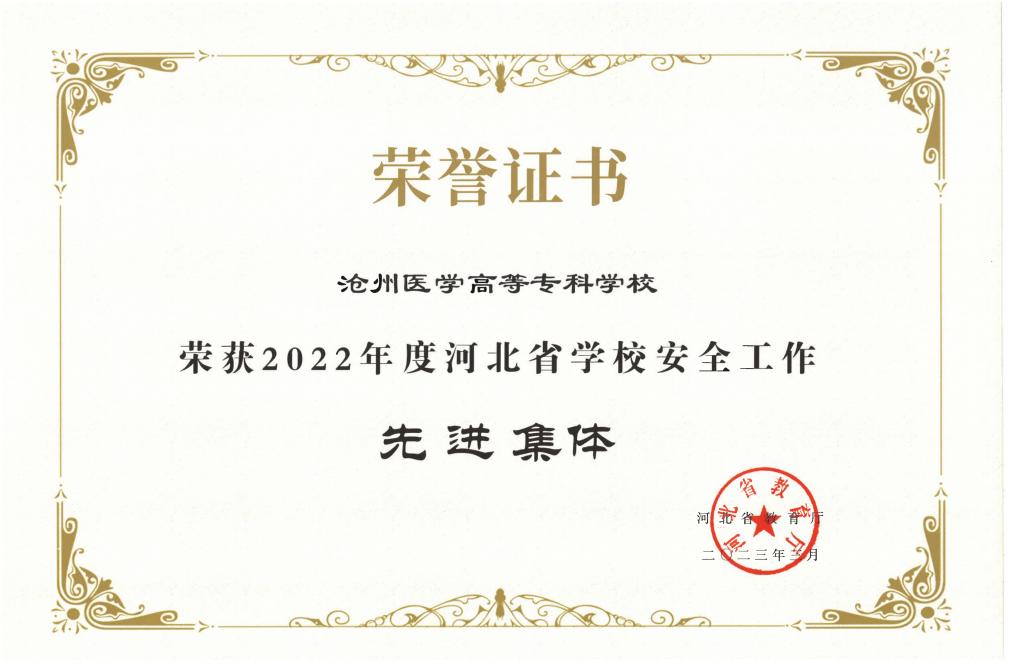 近日,河北省教育厅发布了《关于2022年度全省学校安全工作先进集体和先进个人的通报》(冀教安函〔2023〕11号),我校荣获2022年度河北省学校安全工作先进集体。