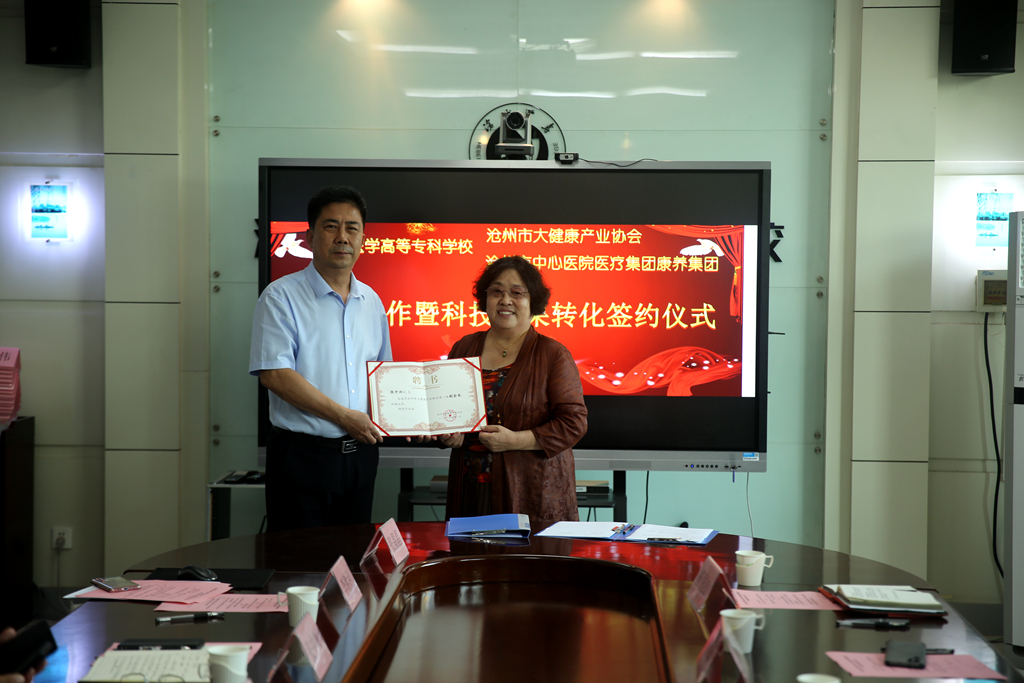 签约仪式由我校党委副书记张中兴主持,沧州市大健康产业协会相关领导及我校科研处、科研创新团队成员参加签约仪式。