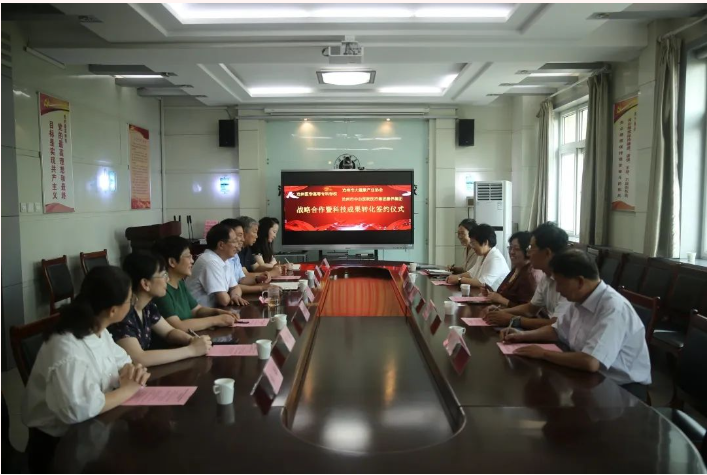 张中兴代表学校与沧州市大健康产业协会、沧州市中心医院医疗集团康养集团签署战略合作暨科技成果转化协议。