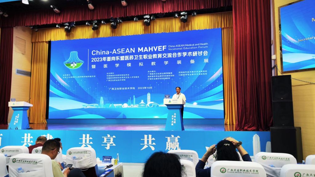 2023年面向东盟医药卫生职业教育交流合作学术研讨会暨医学模拟教学装备展于10月18-21日在广西卫生职业技术学院举办。该次会议旨在搭建中国—东盟职业教育交流合作桥梁,与国内同类高校和东盟国家共商、共建、共享、共赢医药卫生职业教育发展。