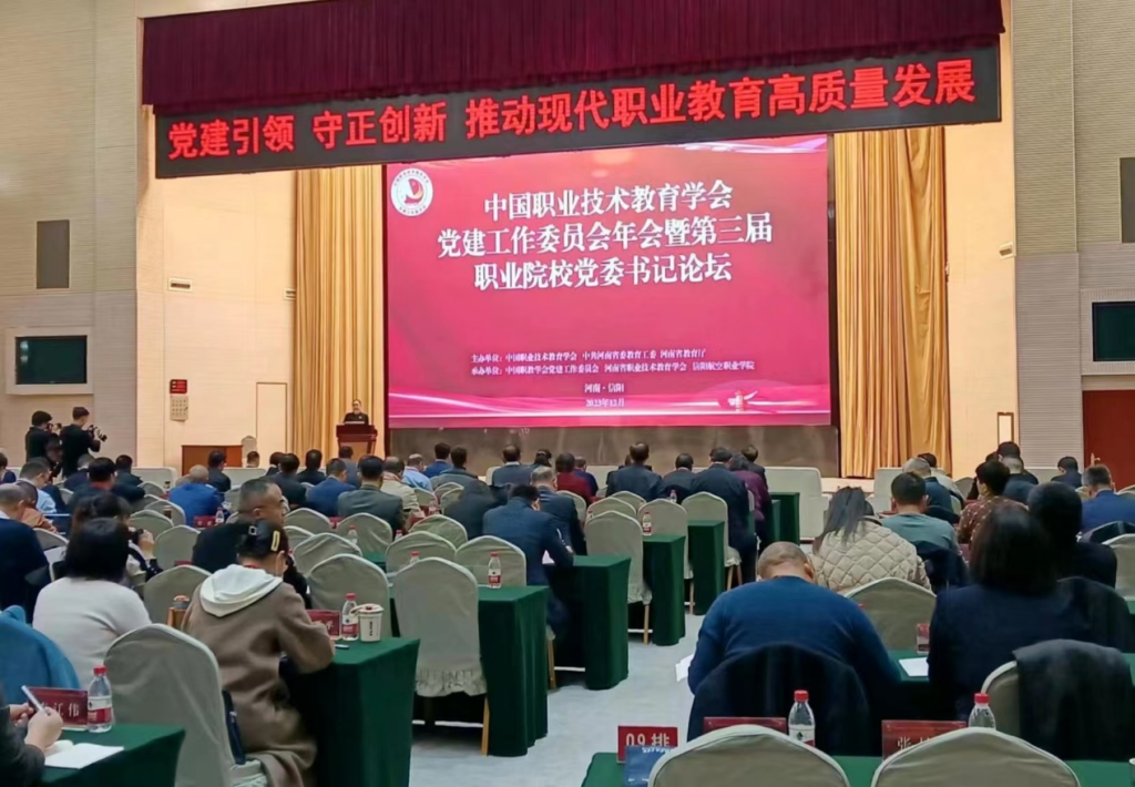 12月8—9日,由中国职业技术教育学会、中共河南省委教育工委、河南省教育厅主办,中国职业技术教育学会党建工作委员会、河南省职业技术教育学会和信阳航空职业学院承办的中国职业技术教育学会党建工作委员会年会暨第三届职业院校党委书记论坛在河南信阳成功举办。来自全国职教战线196所院校、科研院所、职教中心的176位党委书记、校长、副书记、副校长,225位组织部长、宣传统战部部长、马克思主义学院院长齐聚河南信阳市,以“党建引领、守正创新,推动现代职业教育高质量发展”为主题,通过“讲、研、展、观”四个环节,总结工作、分析形势、交流经验,推动职业院校党建工作提质增效。