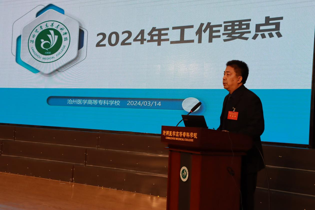 会上,党委副书记张中兴从十一个方面总结回顾了学校2023年的工作情况,并对2024年重点工作任务进行了安排部署。报告指出,2023年,学校党委以高质量党建为引领,以立德树人为根本,以产教融合为驱动,以科教融汇为新方向,以高素质人才为关键,以高效能治理为支撑,按照“党建统领、成果导向、改革创新、融合发展”的建设思路,强力推进“一加强四打造五提升”十大项目建设,产生了一批标志性成果,促进了人才培养质量提高,提升了学校综合办学实力,圆满完成了年度工作目标任务。学校荣获2022年度“河北省高校领导班子考核优秀”“沧州市文明校园”“沧州市教育法治先进集体”“沧州市思想政治工作先进单位”等荣誉称号。