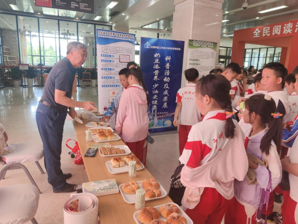 本次活动主题是“弘扬科学家精神,勇当高水平科技自立自强排头兵”。在本次会议期间,沧州市营养学会积极开展科技服务活动,以“奶豆添营养、少油更健康”为主题,组织系列科普宣传活动及营养健康食品成果展示。市委副秘书长万迪宏、市科协主席孙海兵、市科协副主席王秀红等领导对学会营养健康产品表示高度认可,对学会科技工作者的奉献精神给予了高度赞扬,并向在一线服务的工作者表示诚挚慰问。