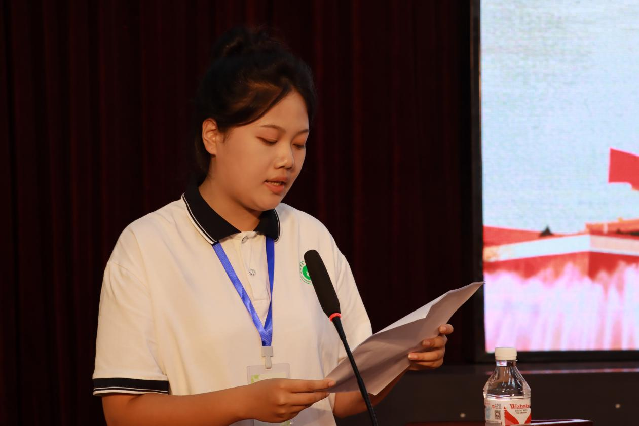 青马学员代表白羽彤发言,号召同学们树立伟大理想,以开放、进取的学习态度,将马克思主义理论内化于心,外化于行。