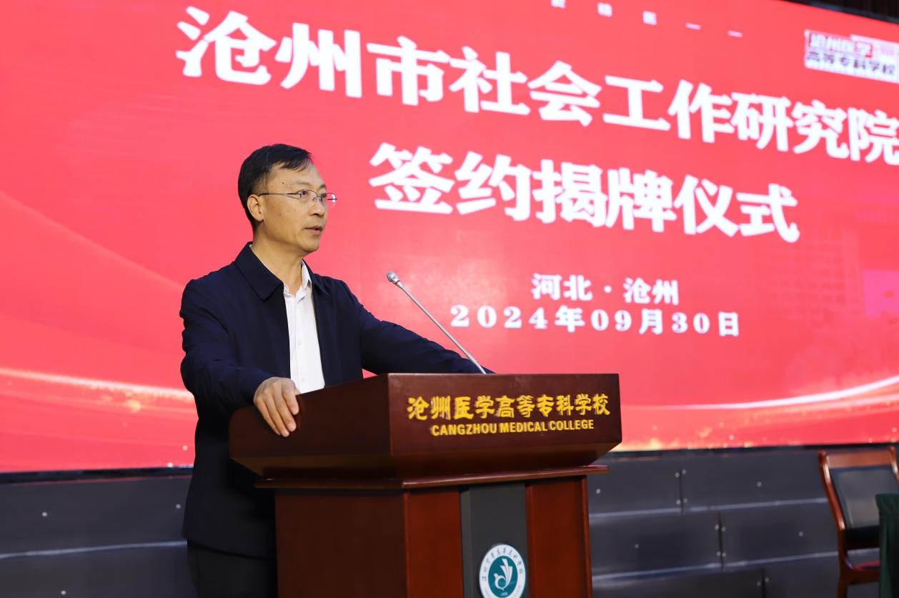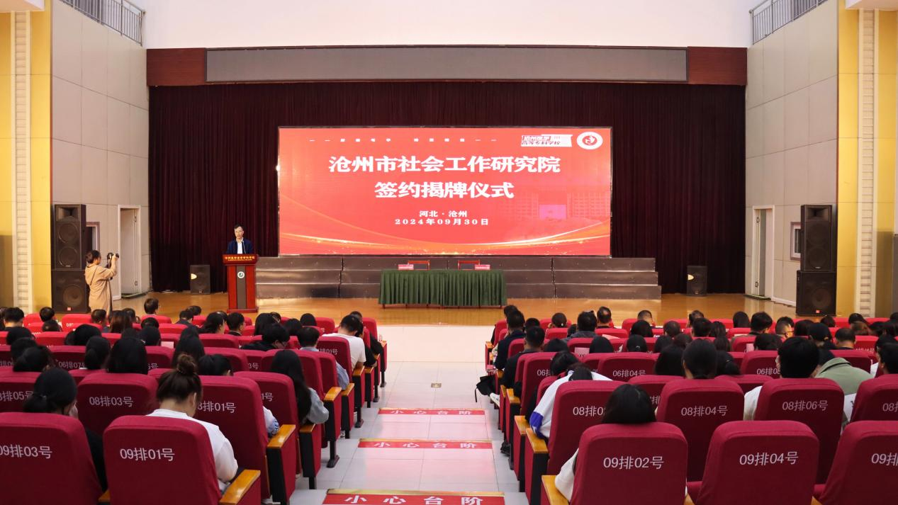 为进一步促进政校交流合作,充分发挥高校社会服务职能,共同推动沧州社会工作高质量发展。9月30日,沧州市社会工作研究院签约揭牌仪式暨“社会工作大讲堂”(第二期)在我校举行。省委社会工作部副部长彭晓明,学校党委书记、校长才晓茹出席活动并致辞,仪式由市委社会工作部部长、市委“两新”工委书记郝文华主持。学校党委委员、副校长王国明,市委社会工作部全体人员,各县(市、区)党委社会工作部部长及业务骨干,社区工作者代表,社会工作者代表,志愿服务组织代表参加活动。