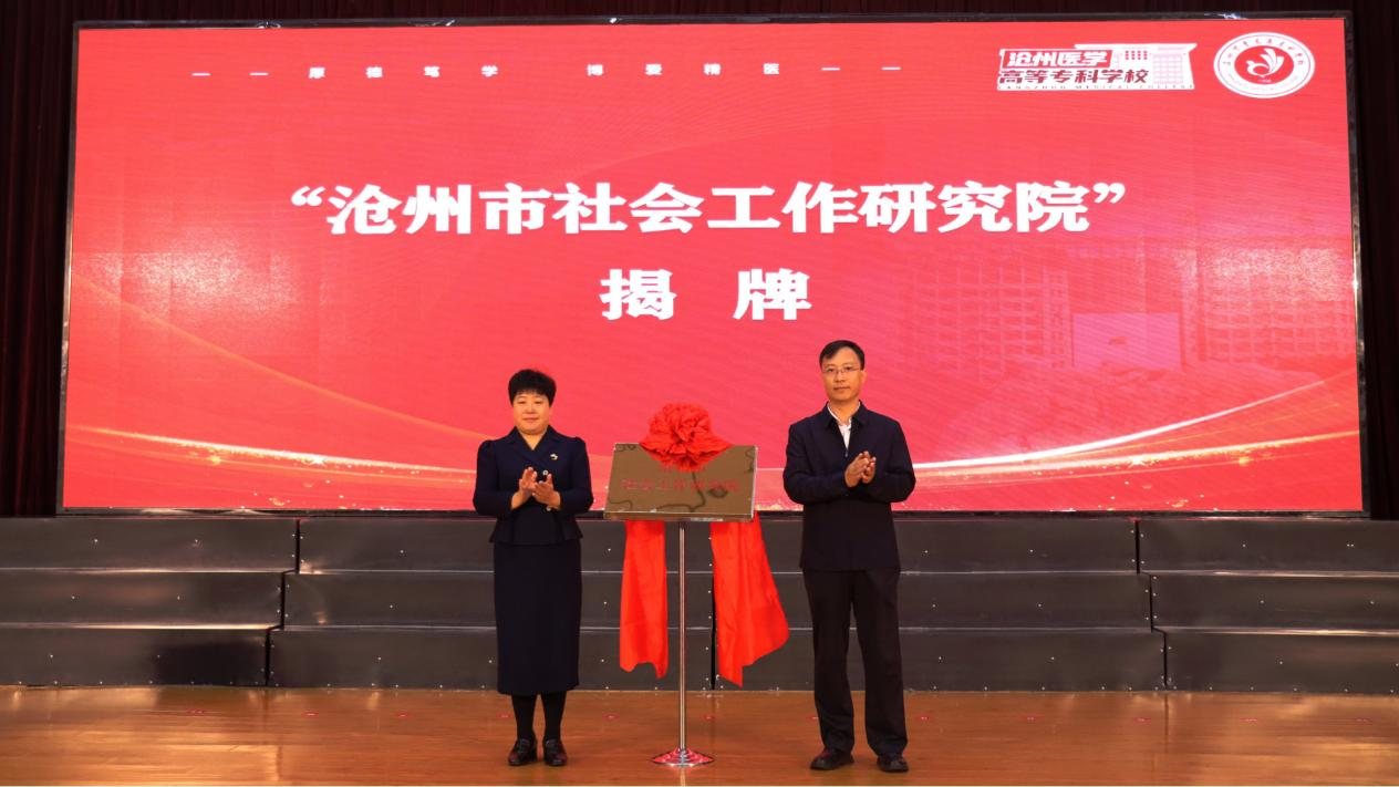 仪式上,郝文华、才晓茹代表双方签订了《战略合作框架协议》,共同为“沧州市社会工作研究院”揭牌。