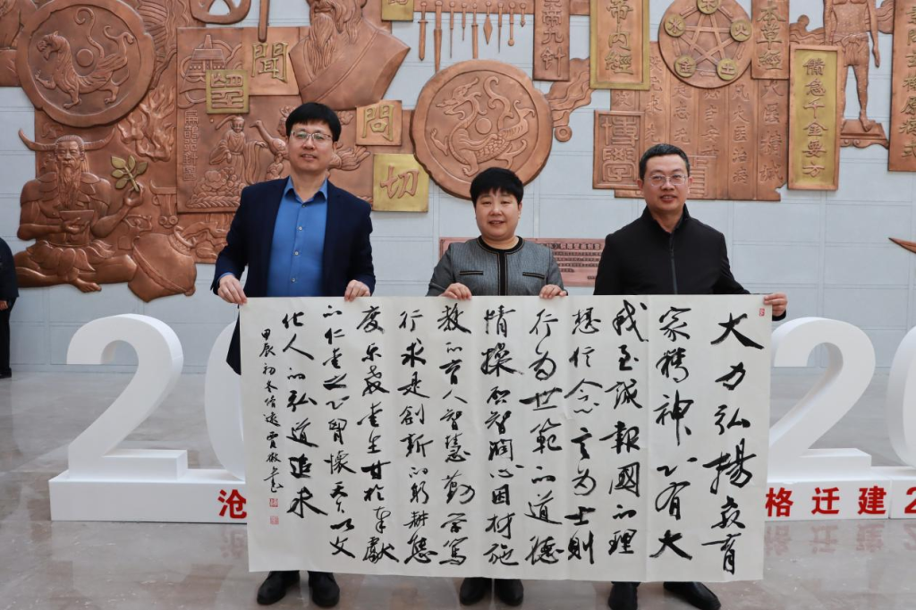张中兴在主持时表示,为深入学习贯彻习近平文化思想,讲好沧医故事,打造医药特色的校园文化品牌,我校开展了《遇见·沧医》文化进校园系列活动。此次书法家进校园作为活动的一项重要内容,我们不仅能够欣赏到名家们的精湛技艺,更能感受到他们对艺术的热爱与追求。希望师生们以此次活动为契机,更加深入地了解书法艺术,从书法的内涵中端正品行,体验人生哲理,感受中国文化的博大精深。