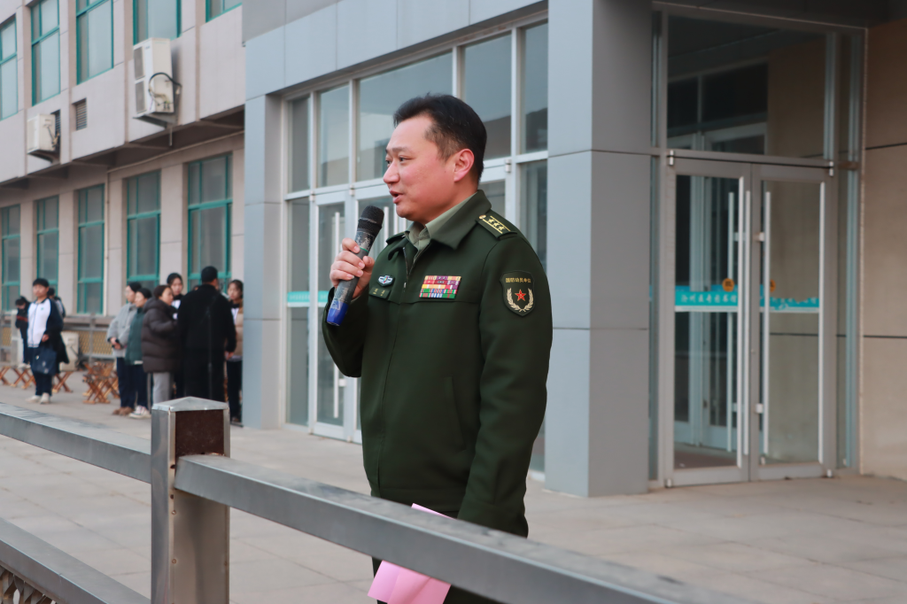 “携笔从戎,绽放青春”。沧州军分区动员处处长陈磊勉励同学们要胸怀家国,将爱国主义融入医学事业,以济世报国为己任;从军尚武,积极响应祖国号召,携笔从戎,展现新时代青年的责任与担当;勇于奋斗,珍惜时光,拼搏奋进,在医学殿堂和绿色军营中书写青春篇章。