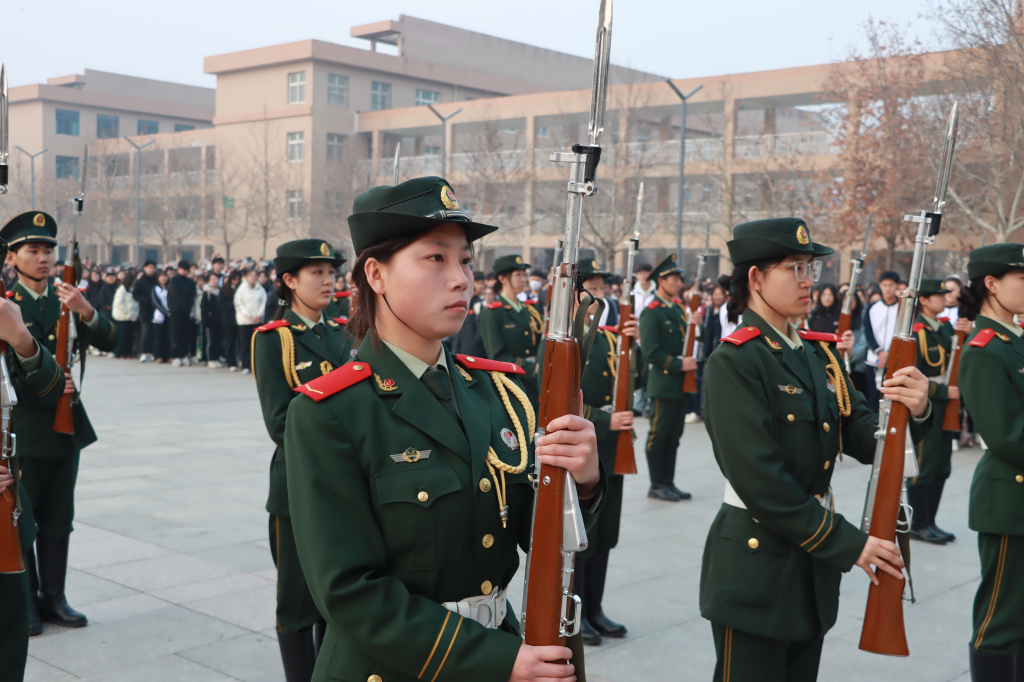 国防中队的同学们带来了精彩的花样操枪表演,他们整齐划一的动作、昂扬向上的精神风貌,赢得了现场师生的阵阵掌声。