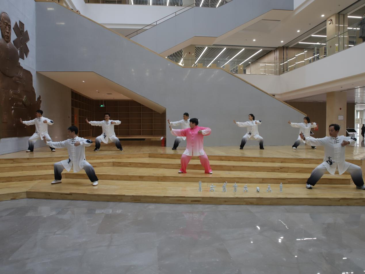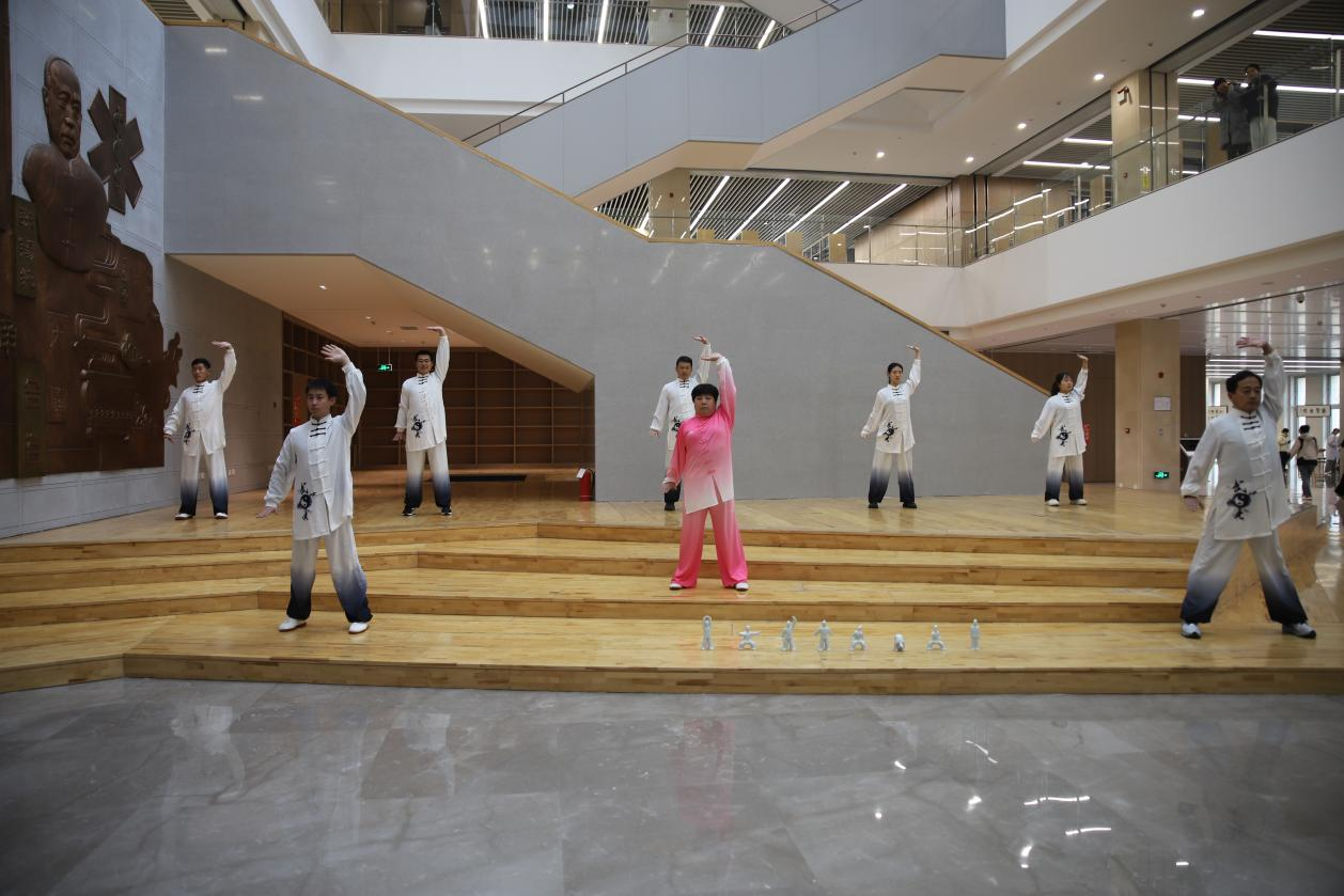 在专业健身气功教练冉晨浩带领下的教练团队进行八段锦完整套路展示,刚柔并济的动作完美诠释“骨正筋柔,气血自流”的中医养生智慧。