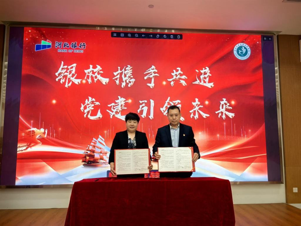 活动上,我校与河北银行沧州分行签署了校企党建共建协议。才晓茹表示,此次党建共建是双方深化党建引领、推动产教融合的重要实践,通过搭建平台,双方将实现资源共享与优势互补,在人才培养、金融服务、社会实践等领域开展深度合作,为师生员工提供更多学习交流机会,全面提升党建工作水平与业务创新能力。宇文战军表示,作为银校党建共建合作的新起点,未来,双方将围绕主题党日、专题研讨、志愿服务等载体,创新活动形式,共同打造校企党建共建品牌,探索金融与教育协同发展的新模式。