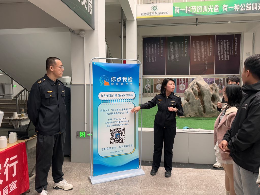 为进一步强化校园食品安全管理,保障广大师生“舌尖上的安全”,日前,运河区市场监督管理局联合我校开展“‘你点我检’齐参与,食品安全共守护”主题宣传活动,通过创新监管模式,深化校地合作,织密校园食品安全防护网。