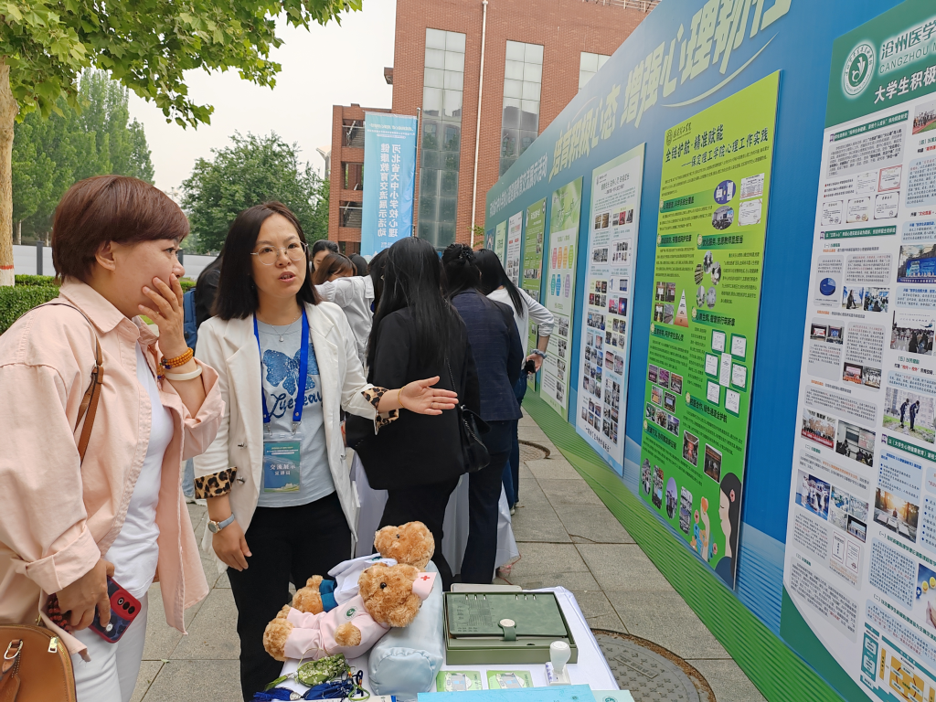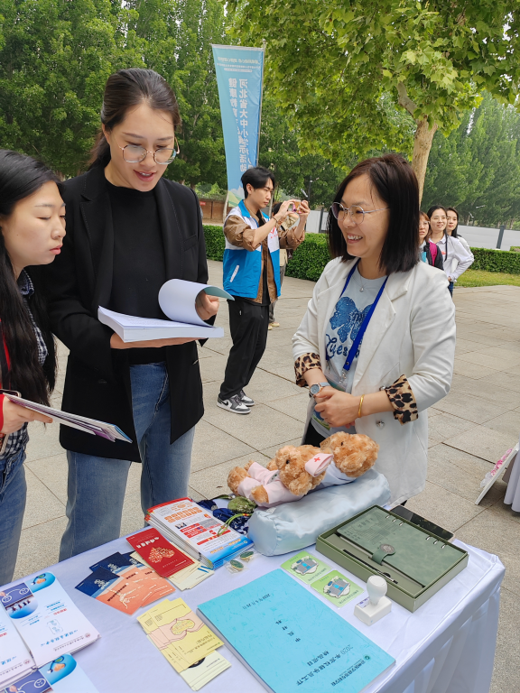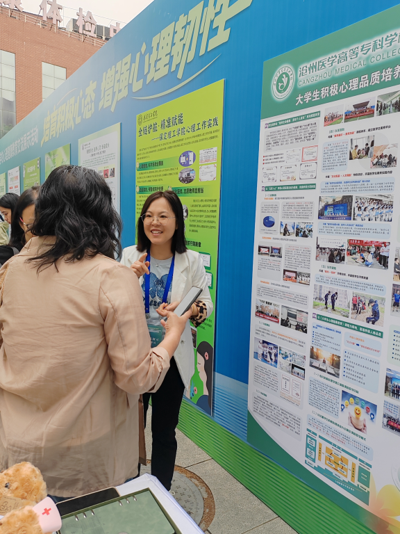 活动现场设有“大中小学校心理健康教育工作特色成果展”,我校作为5所参展高职院校之一,由学工部副部长李园园及心理健康服务中心教师张淑敏带队,通过图文展板、案例手册等形式,集中展示了我校在积极心理品质培养、危机干预机制、校园心理文化活动等方面的实践成果,吸引了众多与会者交流探讨。