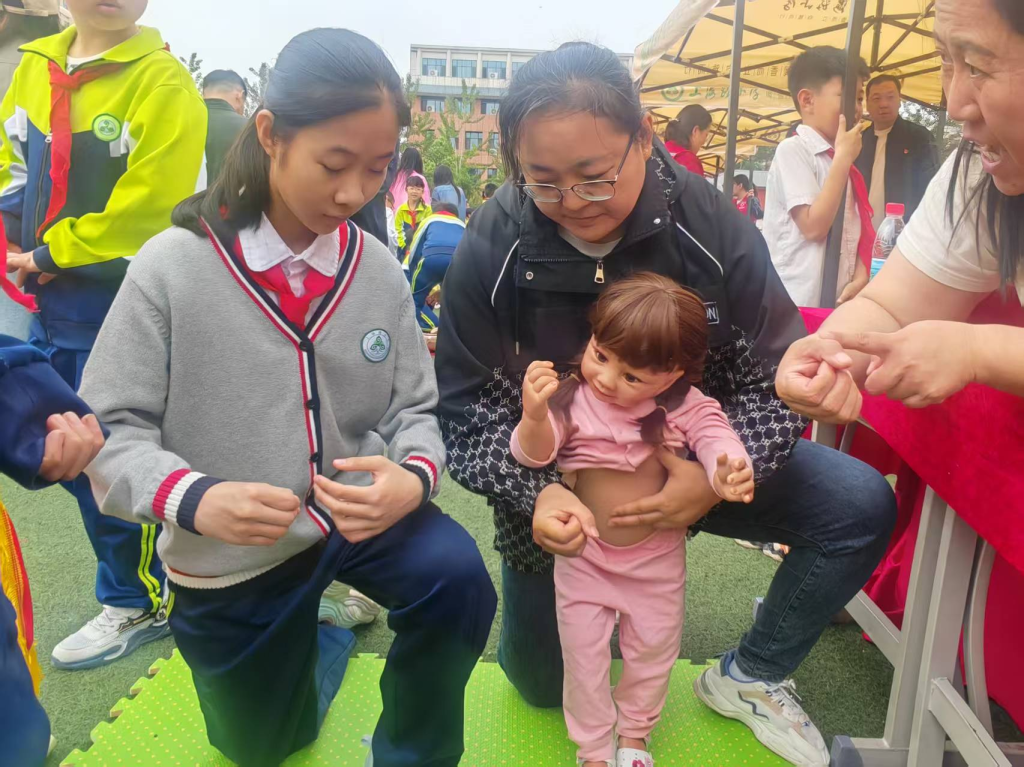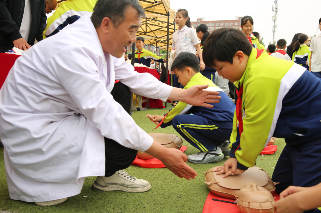 医学系师生为孩子们带来了创伤急救、心肺复苏等实用技能培训。在模拟急救场景中,小学生们认真练习止血包扎技巧,并在人体模型上体验胸外按压操作。“原来按压位置和力度这么重要!”一名六年级学生感慨道。护理系师生则通过模拟人演练,教会孩子们海姆立克急救法的标准动作,强调“剪刀石头布”口诀在气道异物梗阻时的关键作用。