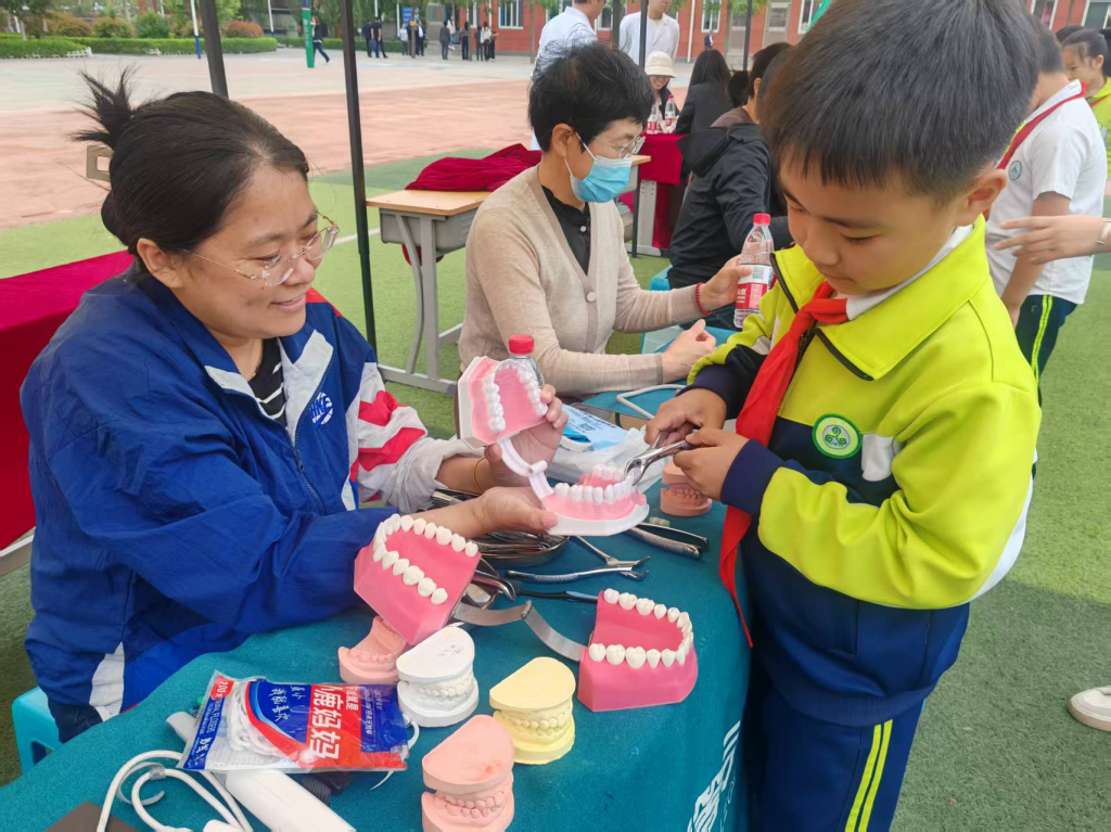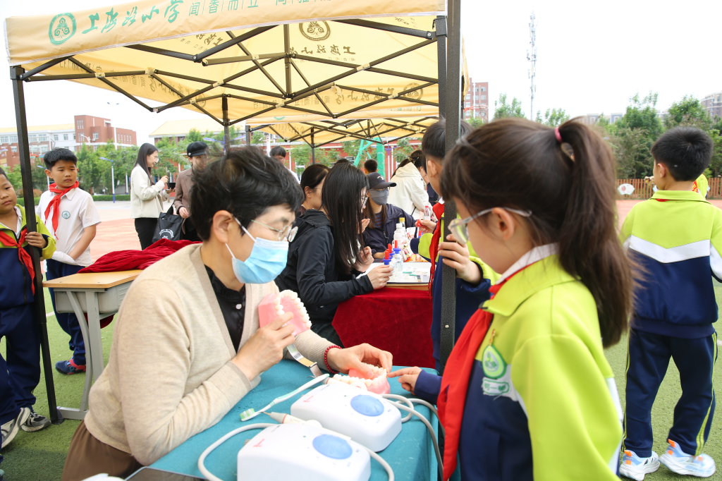 口腔系的体验区充满欢声笑语,在老师的指导下,小学生们用口腔模型练习“圆弧刷牙法”,学习了科学的刷牙方法。老师们用通俗易懂的语言和趣味互动的方式,带领小学生认识牙科器械,让小学生们了解到拔牙钳的设计原理——圆钝的钳喙可以稳稳夹住牙齿,而符合人体工学的握柄能让医生更精准地施力。小学生们还亲手体验“模拟拔牙”的过程,通过“拔牙器械体验”活动,消除了对牙科治疗的恐惧。