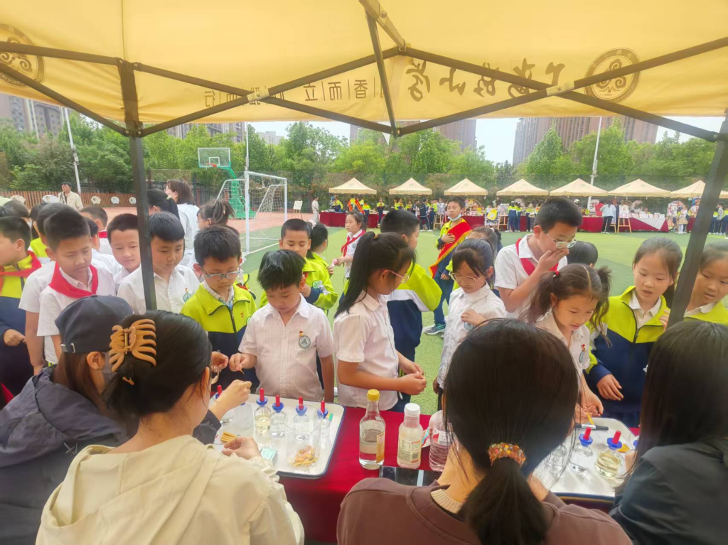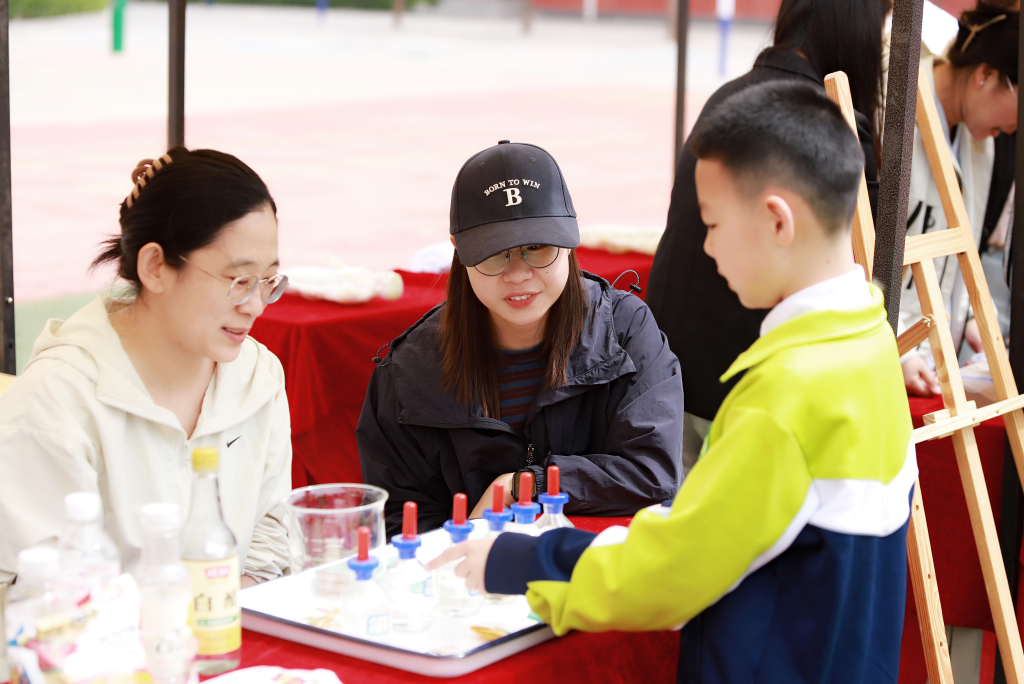 药学系师生用pH试纸测试醋、苏打水等液体的酸碱度,启蒙化学思维。孩子们化身“实验小达人”,小心翼翼地将试纸浸入白醋、苏打水等溶液中。“我的试纸变成粉红色了!”“老师,肥皂水让试纸变蓝了!”展台前洋溢着发现的喜悦,孩子们深切地记住了酸碱就像交通信号灯一样,红色代表酸性,蓝色代表碱性。