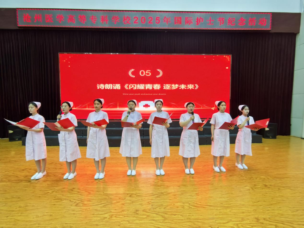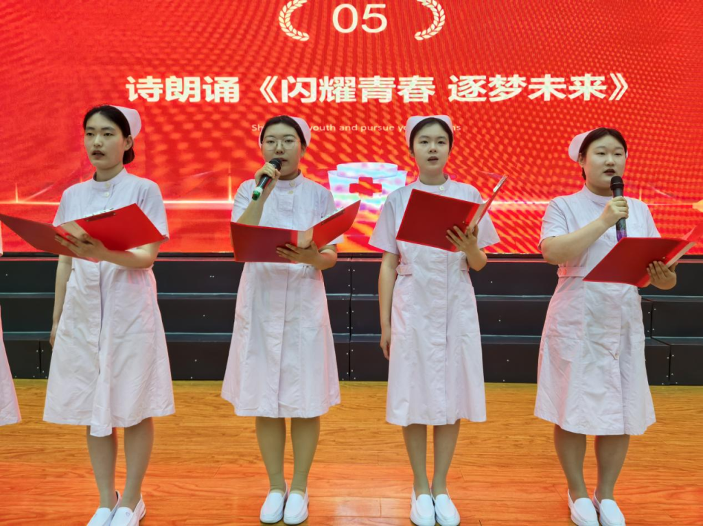 国家奖学金获得者带来的诗朗诵《闪耀青春,逐梦未来》,以饱满的情感、铿锵的语调,抒发了护理人“以梦为马,不负韶华”的壮志豪情,字句间尽显青春的热血与担当,赢得了全场观众的热烈掌声。