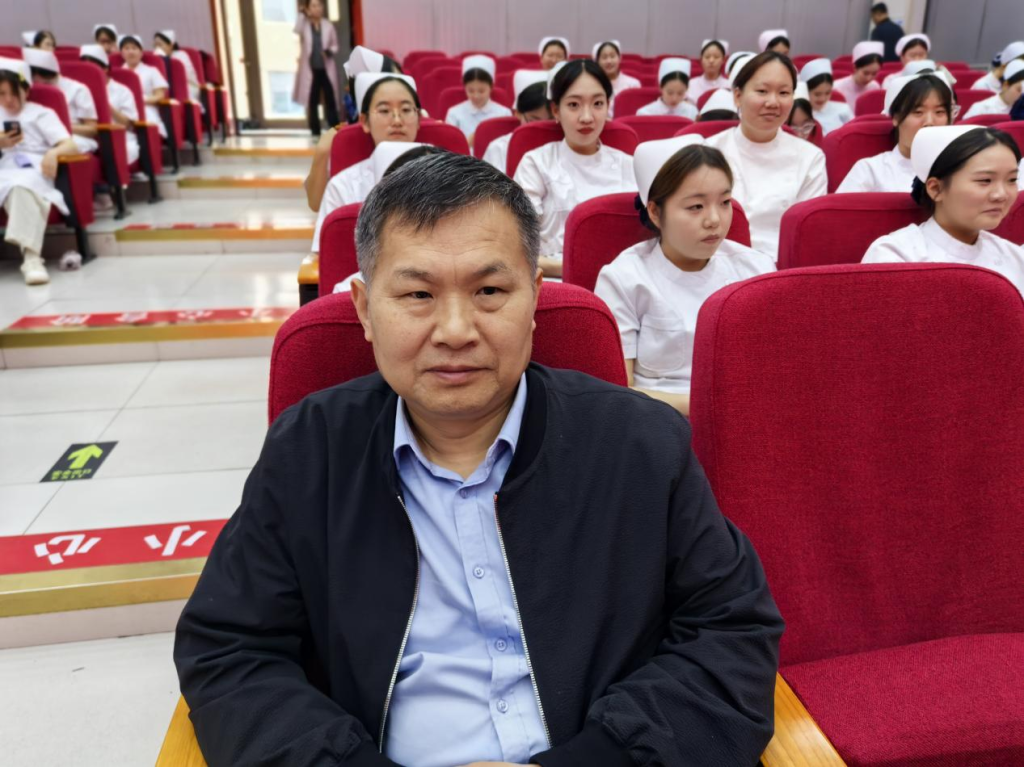 原护理系党总支书记、主任金玉忠以“回首往昔、立足当下、寄语未来”为主线,深情分享了自己对护理事业的深刻理解。他说,护理工作是“良心活”,需以德为先、以技为本、以梦为马,希望同学们传承护理职业精神,用爱心与责任谱写青春华章。