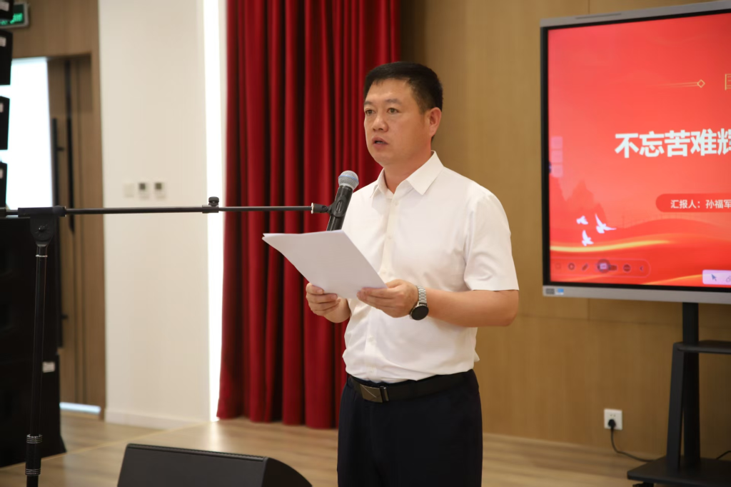 在“忠诚铸就军旅魂 仁心照亮医学路”事迹报告会上,退役军人干部、原某部政委孙福军以《不忘苦难辉煌 赓续红色血脉》为题,为现场师生讲述了有国无防的历史之殇,中国共产党领导下的红色革命历史以及当前复杂严峻的国际形势,勉励青年学子要努力学习知识,夯实强国之能,树立远大理想,勇担时代重任,彰显青春担当。