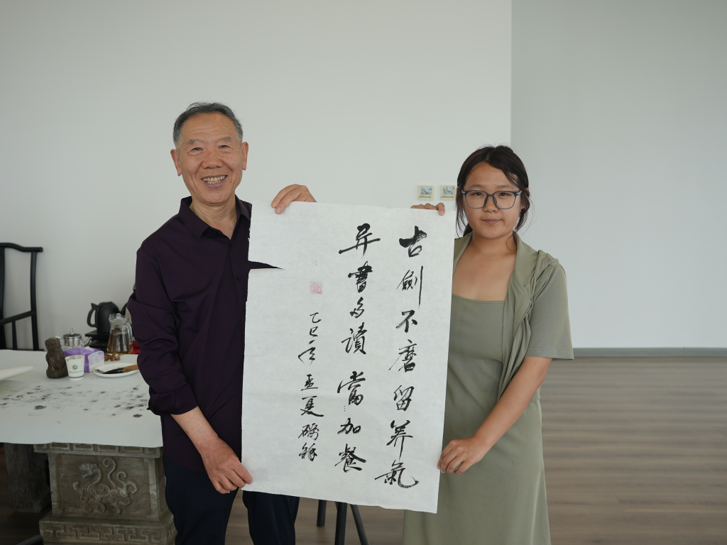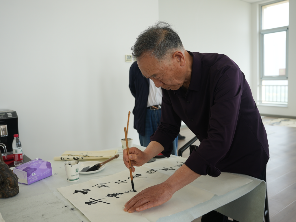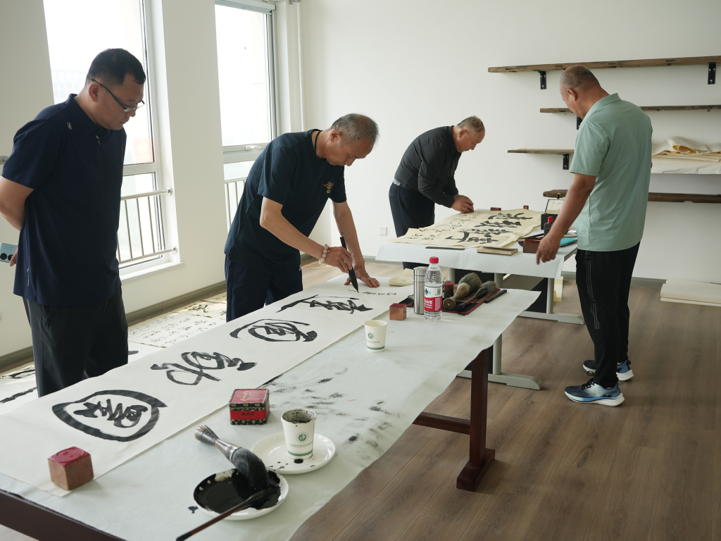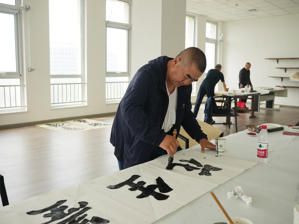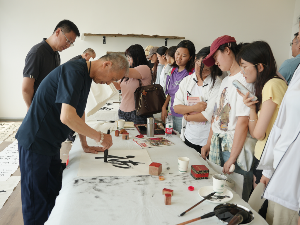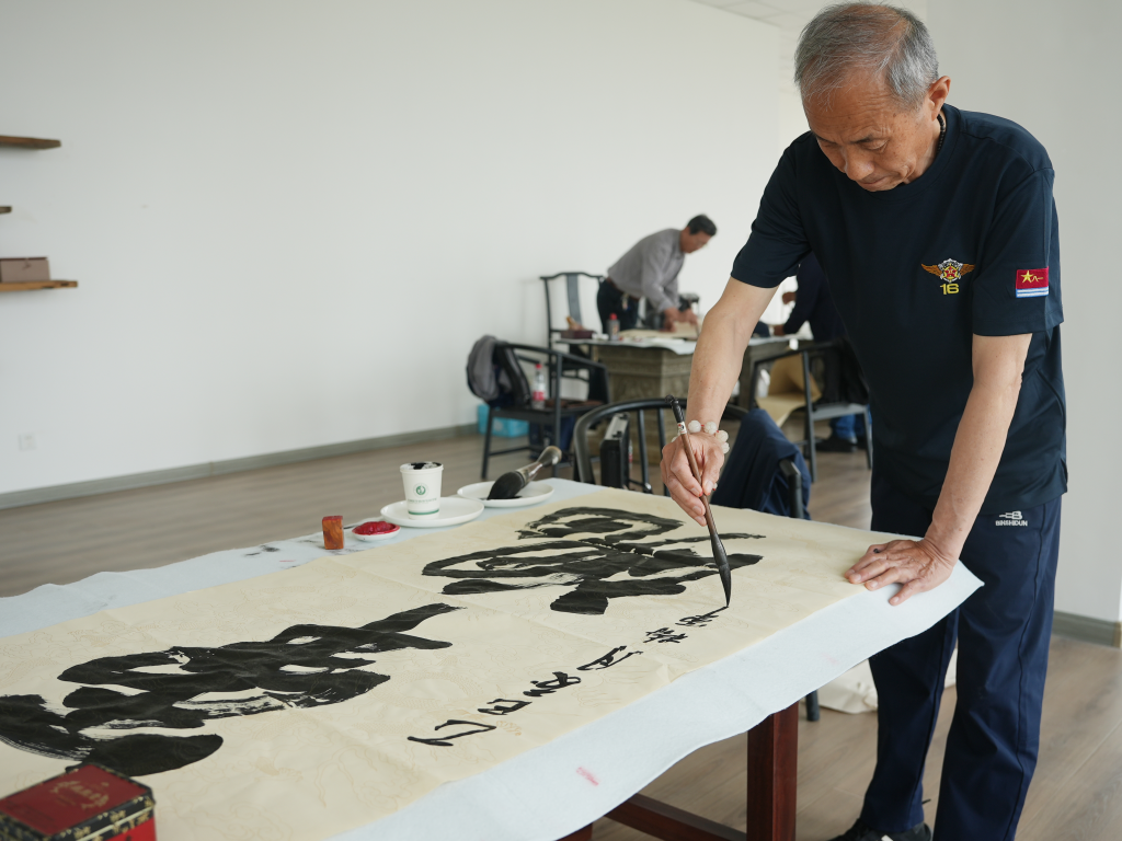 在“戎装褪去墨香浓·书卷传承薪火行”退役军人红色书法创作环节,退役军人书法家张国兴、陈树军、吕兆毅、马成俊等现场挥毫,以笔墨为媒,书写“强军有我”“医者仁心”等主题作品。他们笔走龙蛇,将铁血军魂与医者仁心融入一幅幅作品中,引得现场师生驻足赞叹。
