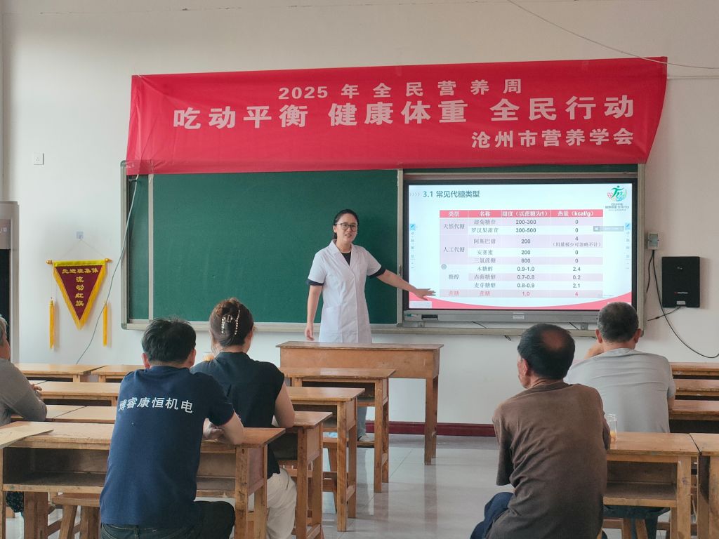 沧州医专刘家琦老师讲座主题为《0糖真的不会长胖吗?——破解甜蜜陷阱的真相》,结合“0糖陷阱”的认知误区进行了深度解析,告诫村民要正确认识和摄取糖类,科学管理体重。