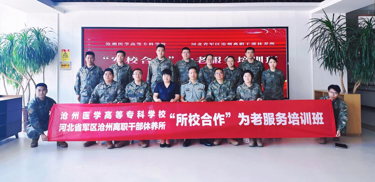 为充分发挥学校医养康养专业优势,深化产教融合,拓展社会服务领域,精准对接沧州市军队离退休老干部养老服务需求,扎实推进“双拥”工作走深走实,近日,我校与沧州离职干部休养所正式签署《为老服务共建共享战略合作框架协议》,并举行首期“所校合作”为老服务培训班,共同开启“医养融合、资源共享、服务军休”新模式。