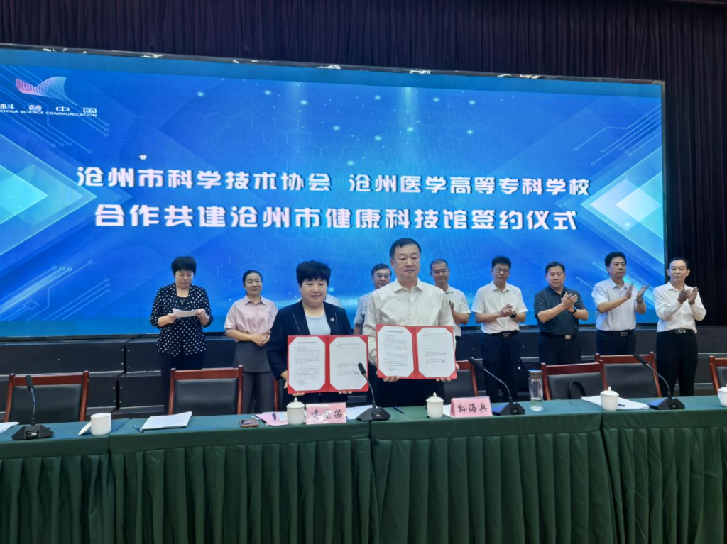 才晓茹与孙海兵共同签署了沧州市健康科技馆合作共建协议,标志着校地协同科普建设迈入新阶段。