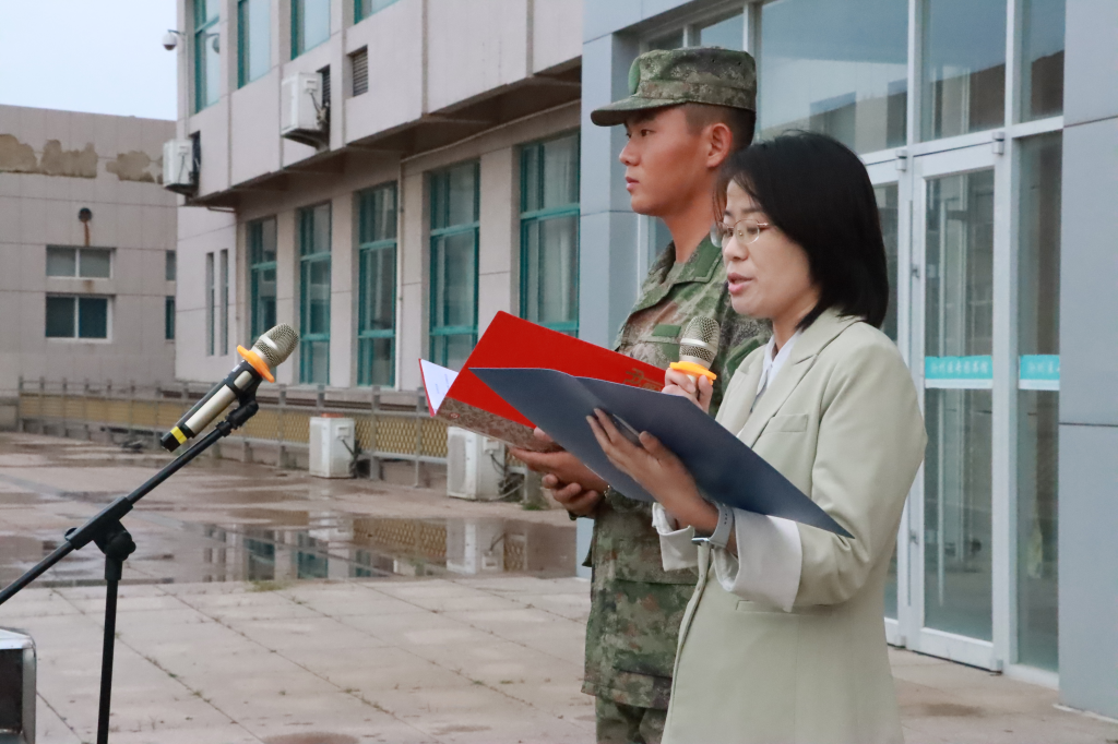 仪式上,医学影像技术专业的闫海波同学作为学生代表发言。今年9月3日,他作为仪仗方队的一员参加纪念中国人民抗日战争暨世界反法西斯战争胜利80周年大会阅兵式,光荣接受祖国和人民的检阅。