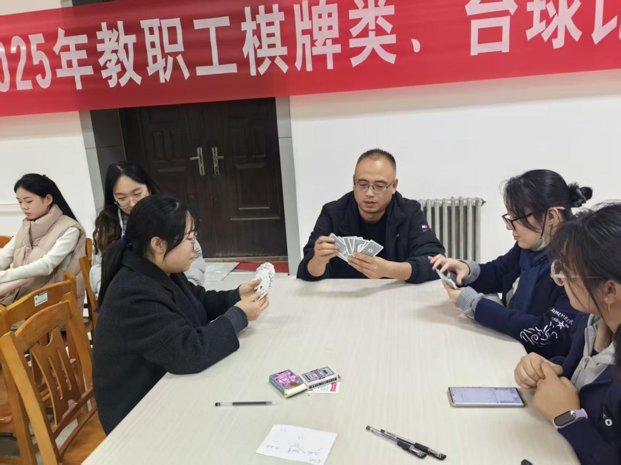 11月10—14日,我校2025年教职工秋季运动会圆满收官。本次运动会设有台球和棋牌类两类赛事,旨在丰富教职工业余文化生活,缓解工作压力,增进交流与合作,营造积极健康向上的校园文化氛围。本次活动也是我校职工活动中心乔迁新址后的“赛事首秀”,新场地赋予我们怎样的全新体验,又定格了哪些难忘的“高光时刻”呢?快跟随我们的镜头,一起回顾这场趣味十足的“指尖盛宴”吧!
