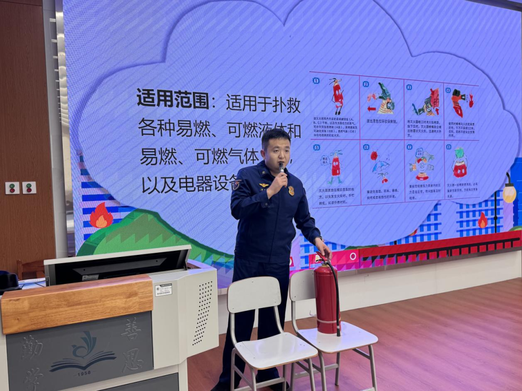 消防救援站专家曹家旺为师生带来一场贴近校园实际的消防知识讲座。他结合真实案例,深入浅出地讲解了火灾成因、宿舍用电安全、实验操作规范等内容,重点介绍了灭火器的使用方法及火场逃生自救技巧,切实增强了师生的防范意识与自救能力。