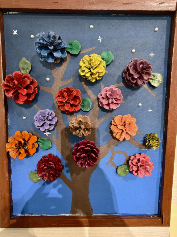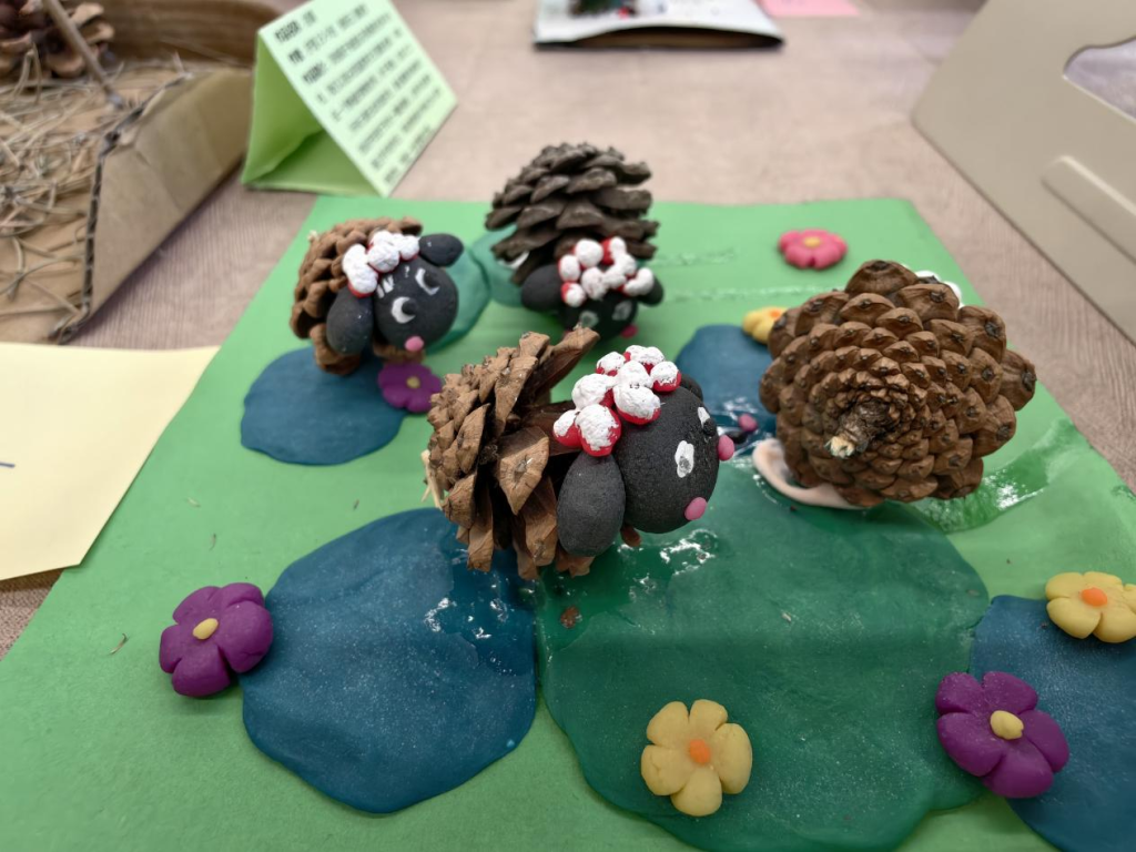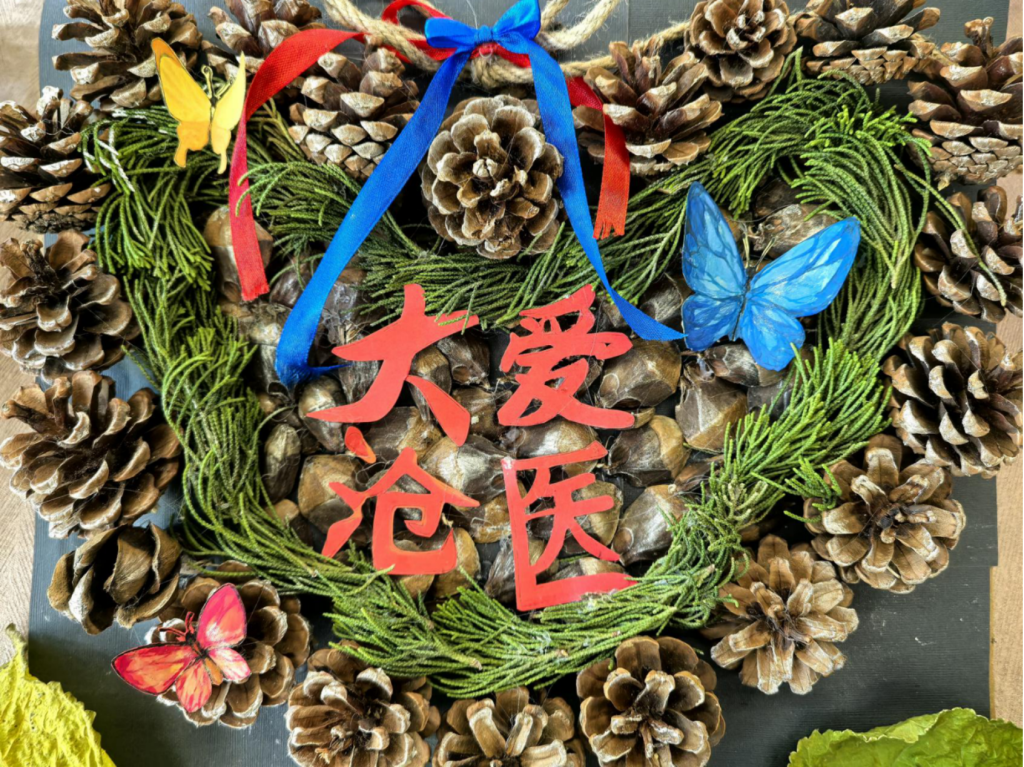 “松”生妙手松子手工艺品展则藏着另一种惊喜。松果的厚重、松子的精巧,在同学们手中幻化成一件件有温度的作品:松针编织的工艺品纹路细密,松果堆叠的小摆件造型别致,松子串成的挂饰精巧可爱......每一件都透着对自然材料的敬畏与巧思。这些作品没有华丽装饰,却凝聚着创作者反复打磨的耐心,正如“大爱沧医”的育人理念,于细微处见真情,于坚守中显匠心。