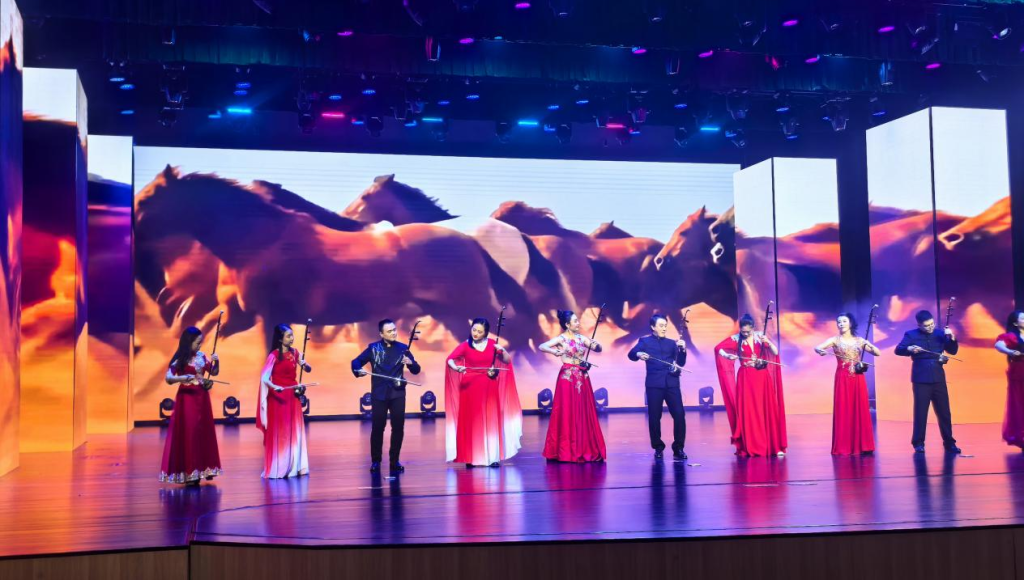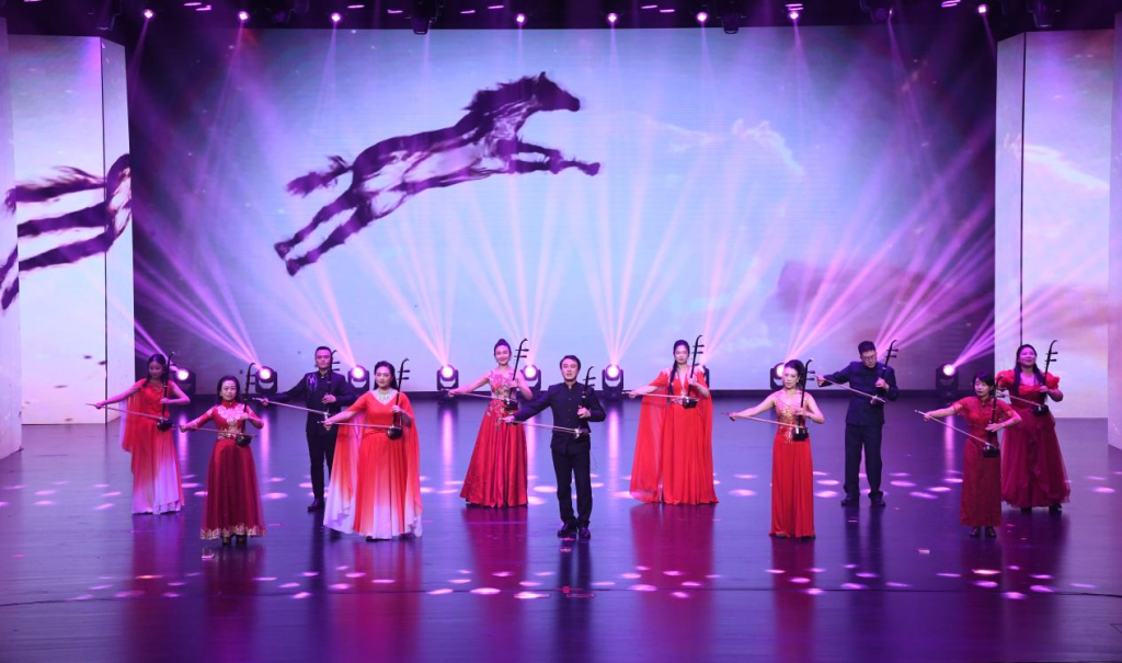 我校教职工李龙军参与的二胡集体演奏《战马奔腾》则尽显豪迈气魄。弓弦震颤间,似闻草原战马嘶鸣;旋律激昂处,如见骑兵挥刀冲锋。乐手们以精湛技艺刻画“英勇顽强、一往无前”的战斗群像,让观众仿佛置身苦练精兵的热血现场,深切感受国防力量的震撼与昂扬。