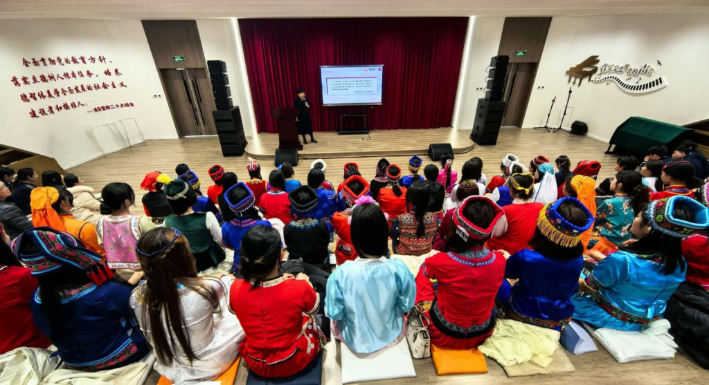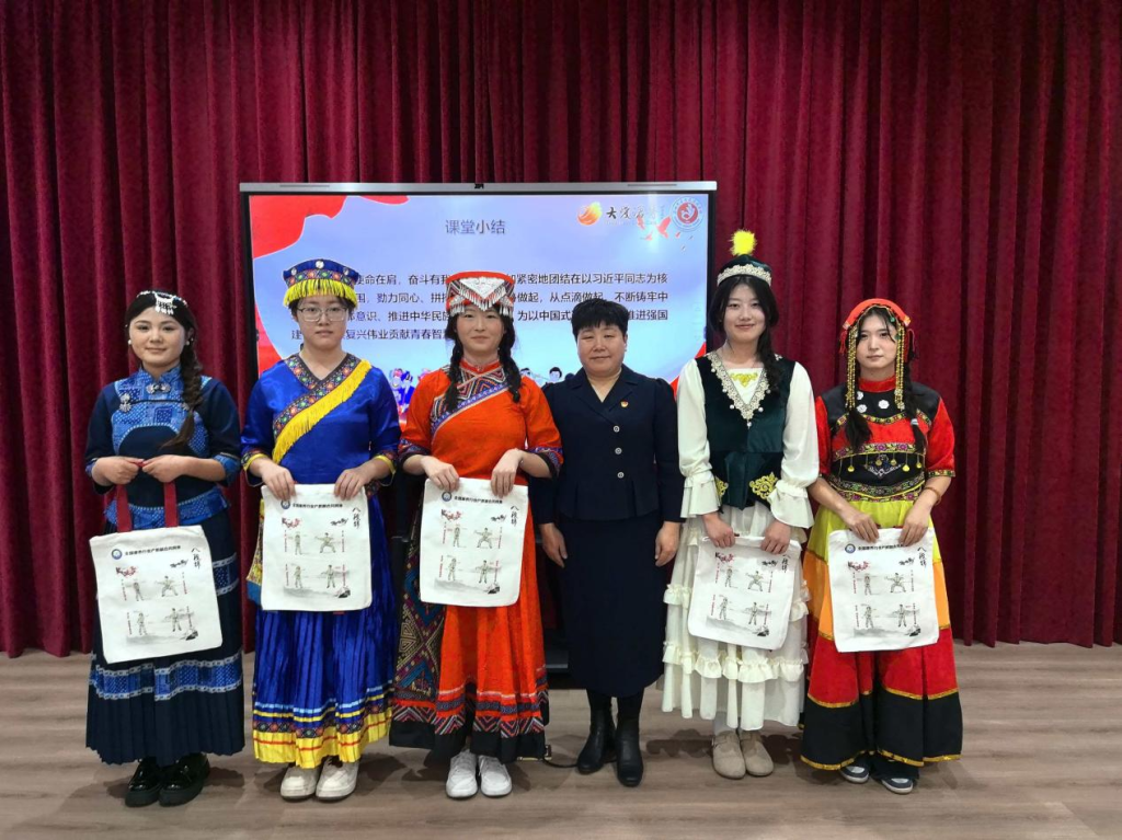 才晓茹巧妙运用“十二、五、四、四”四个数字,构建起一个清晰而坚实的理论框架:从“十二个必须”的根本遵循,到“五个共同”的历史内核;从“四个与共”的核心理念,到四对关系的辩证统一。她以鲜活的历史事实和生动的现实案例,讲述了各民族共同开拓辽阔疆域、共同缔造统一多民族国家、共同书写辉煌历史、共同创造灿烂文化、共同培育伟大民族精神的壮丽史诗。同学们深刻体悟到,中华文化是各民族文化的集大成者,中华民族是由56个民族汇聚而成的多元一体命运共同体。