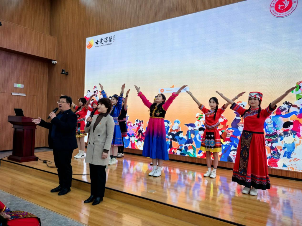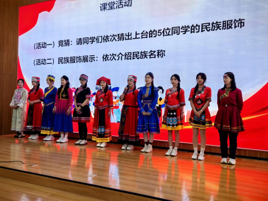 趣味互动与文化展演轮番登场,温情满满、惊喜不断。民族服饰趣味竞猜环节,同学们踊跃举手、积极应答,每一次精准辨识都收获热烈掌声,答对的师生惊喜领取沧医专属“狮小沧”“喵小医”吉祥物与健康环保袋,小小礼物承载满满心意,让团结友爱氛围充盈全场。